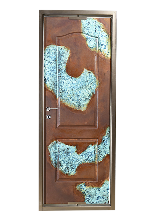 Note:  This particular finish is for illustrative purpose only and can be achieved in Brass, Bronze, Copper and Metallure finishes on any solid surface like (Metal,Wood,MDF) doors in any practical size.
