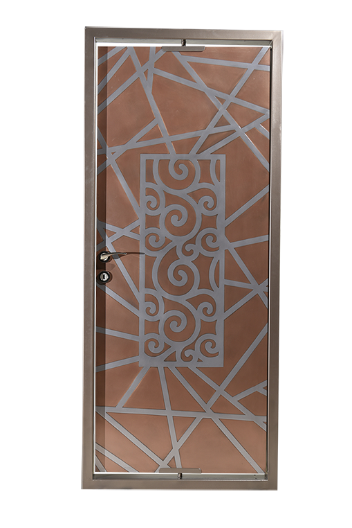 Note: This particular finish is for illustrative purpose only and can be achieved in Brass, Bronze, Copper and Metallure finishes on any solid surface like (Metal,Wood,MDF) doors in any practical size.