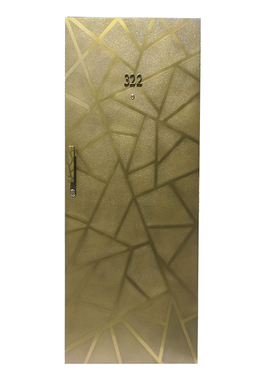 Note:  This particular finish is for illustrative purpose only and can be achieved in Brass, Bronze, Copper and Metallure finishes on any solid surface like (Metal,Wood,MDF) doors in any practical size.